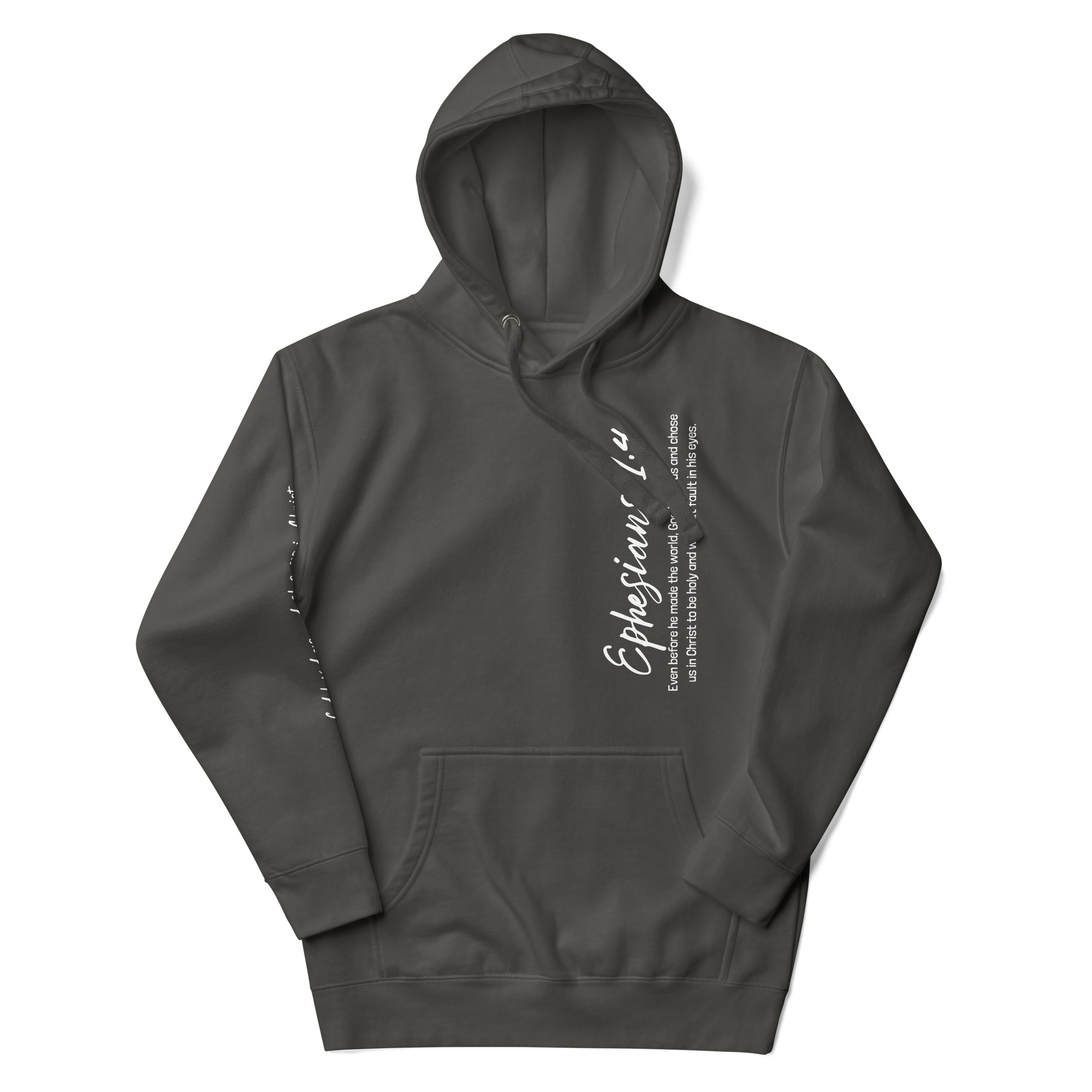 Front: “Ephesians 1:4 – Even before he made the world, God loved us and chose us in Christ to be holy and without fault in his eyes.”