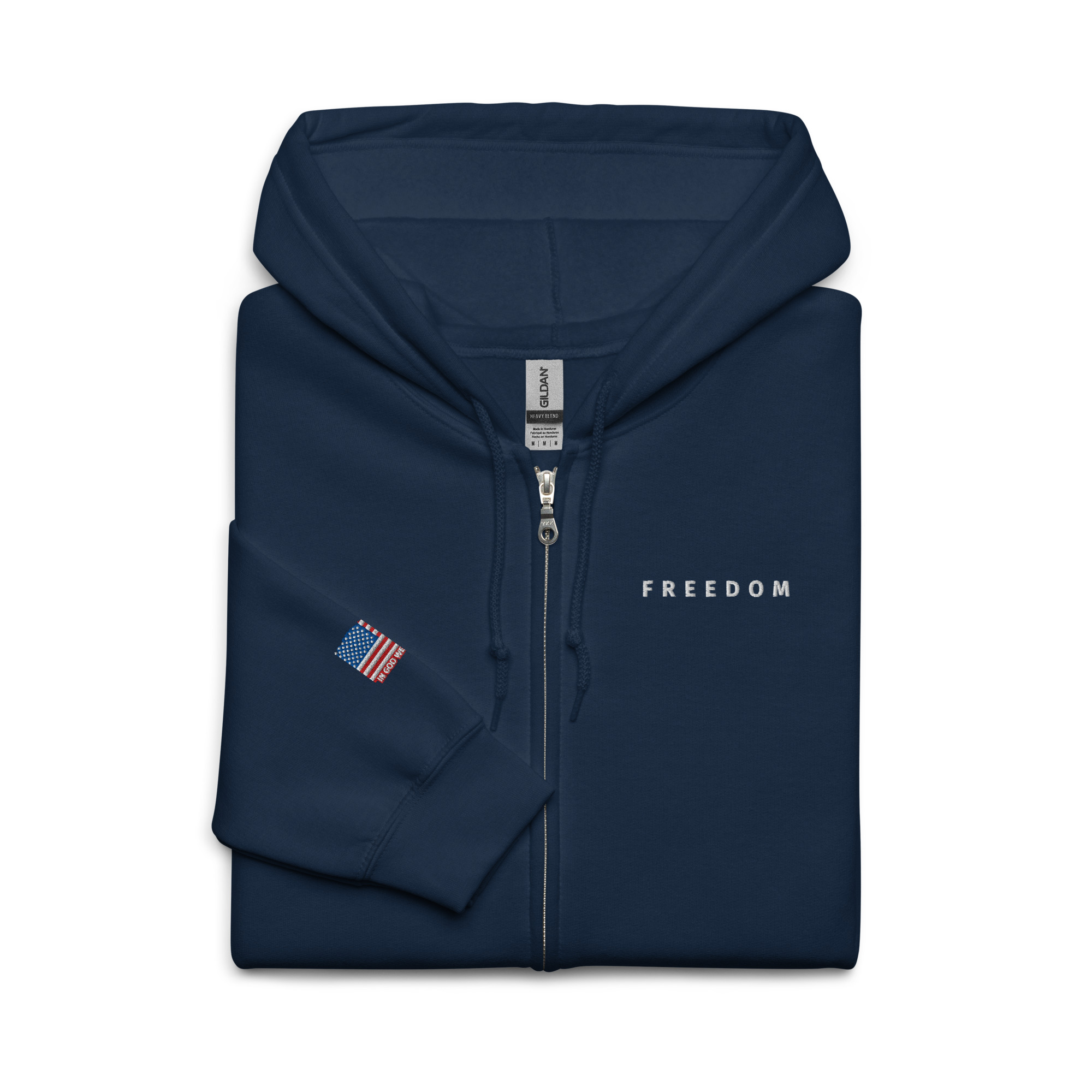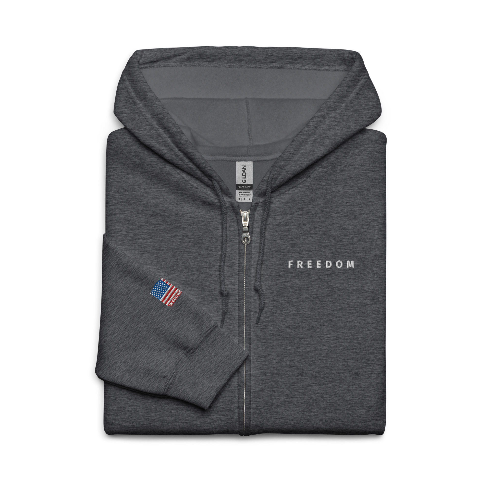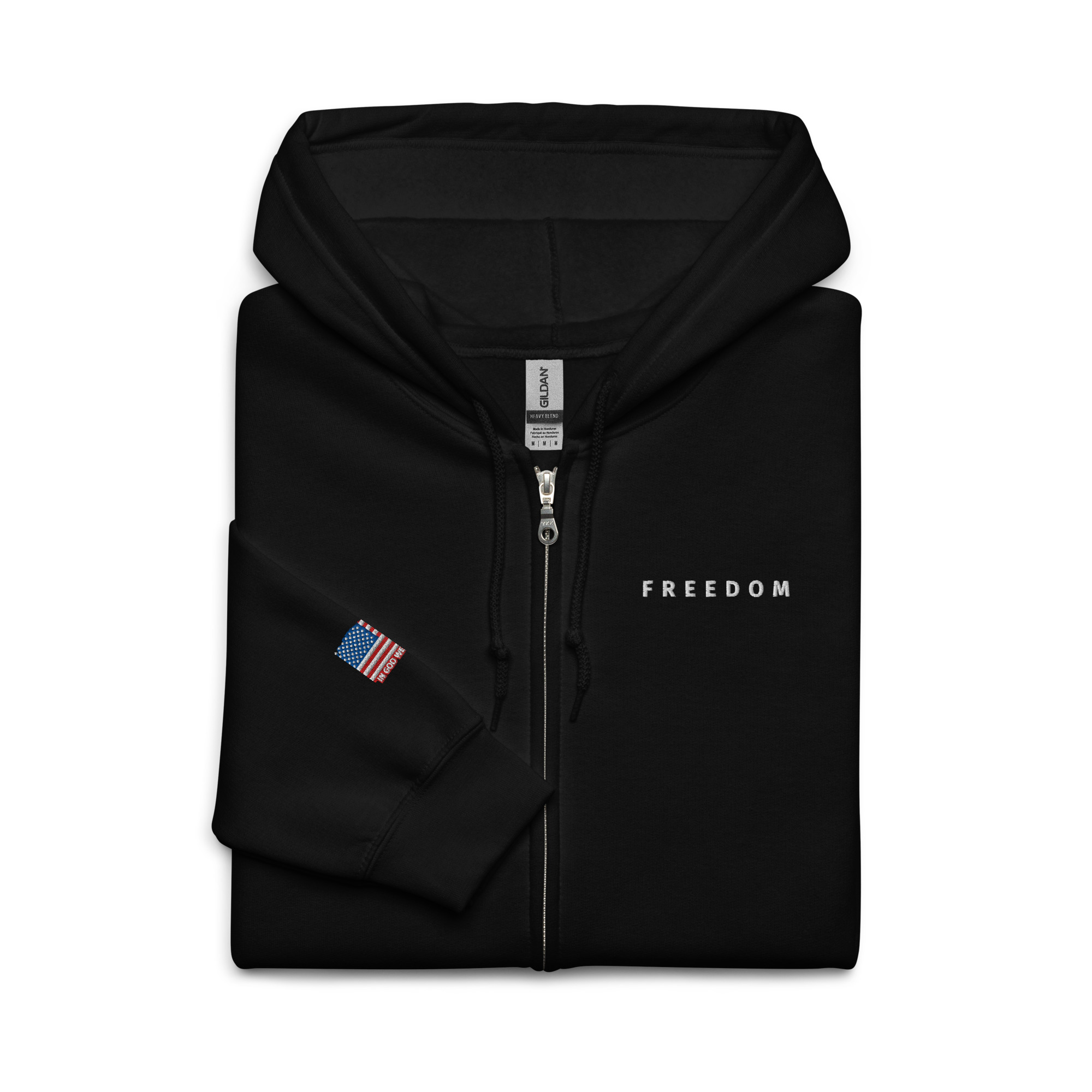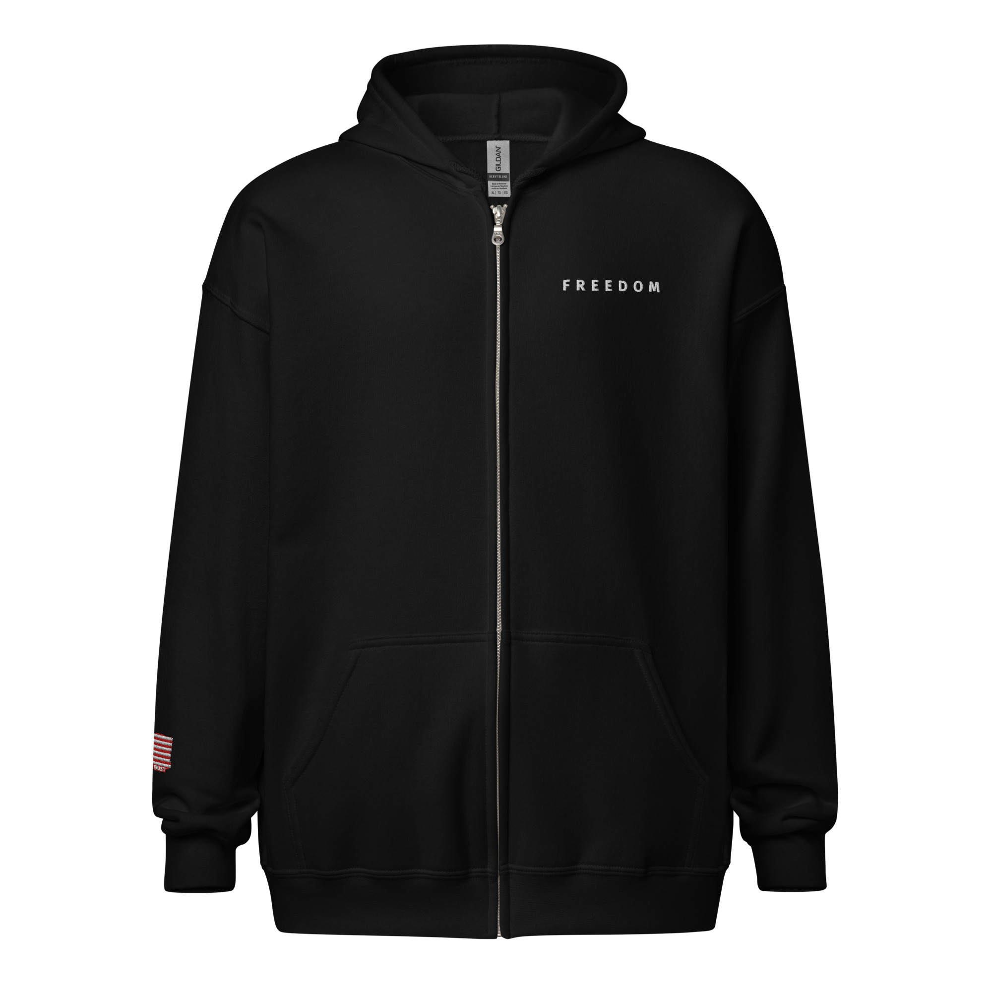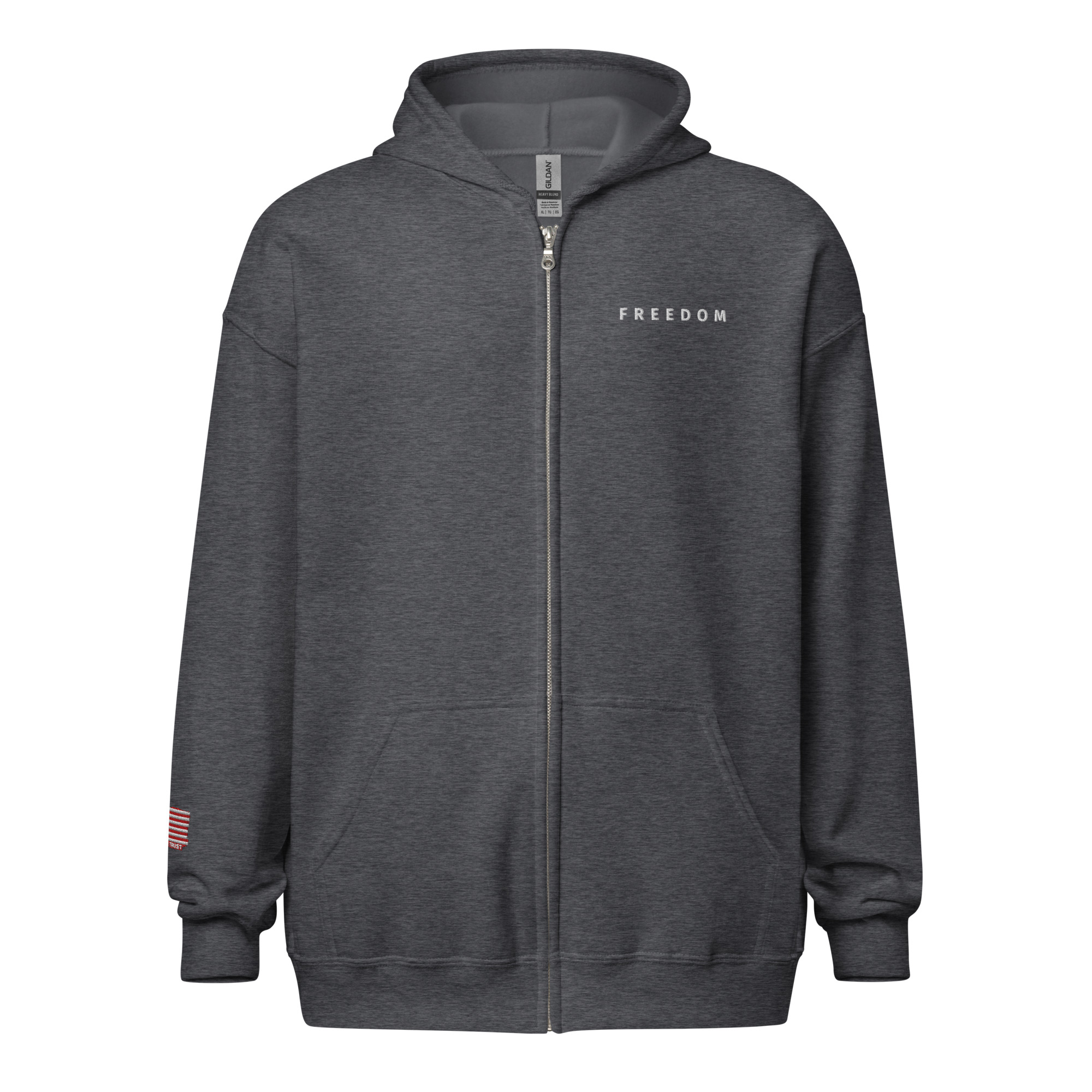 Designed with style and comfort in mind, this hoodie will quickly become your new favorite. It’s made from soft fleece inside and outside, with a sturdy metal zipper, convenient front pockets, and a hood with color-matched drawstrings.